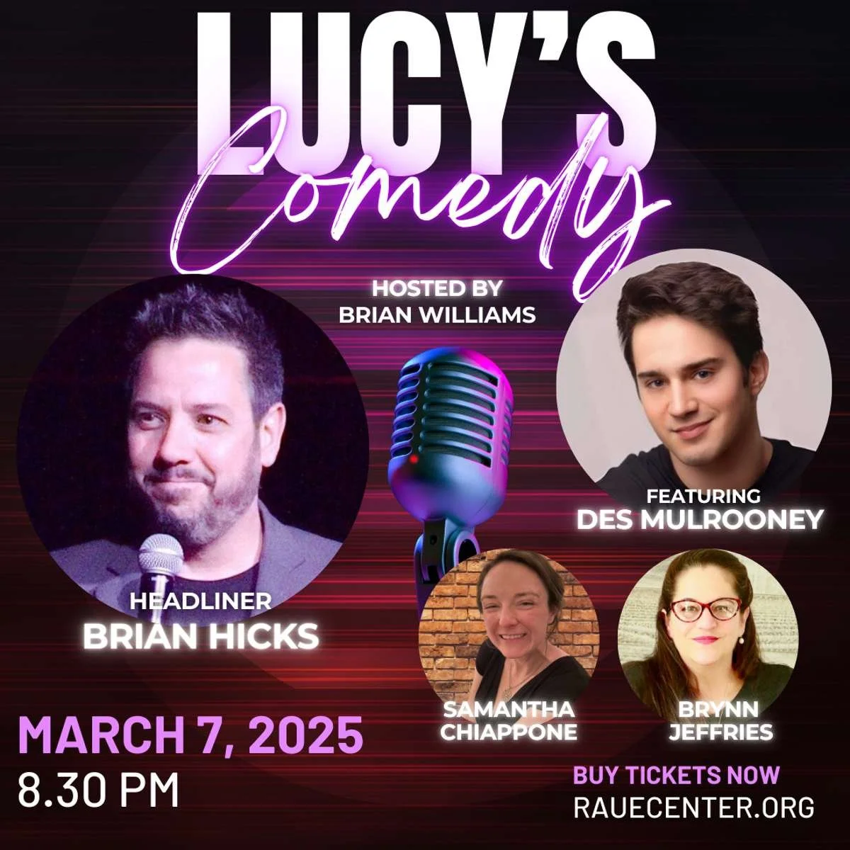 Best stand-up in the burbs! Raue Center brings the best stand-up comics in the Chicagoland area close to home with Lucy’s Comedy, Raue Center’s longest-running program! Curated by comic and radio personality, John DaCosse.