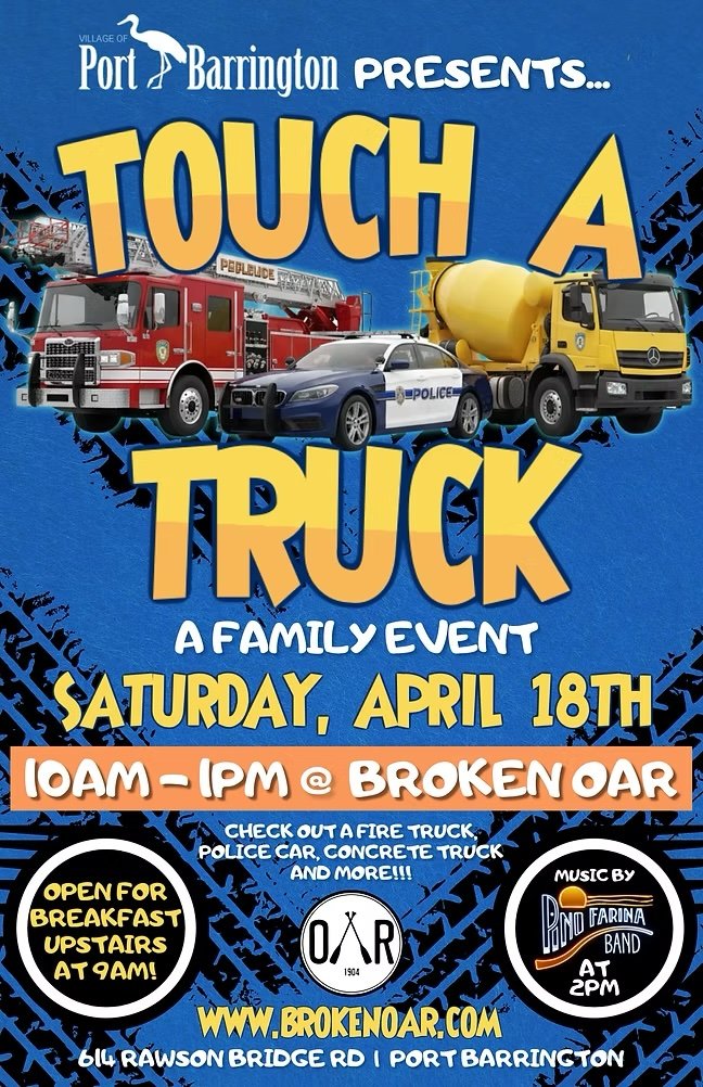 Bring the whole crew out to Broken Oar for a fun, family-friendly morning packed with BIG trucks, cool experiences, and great food!