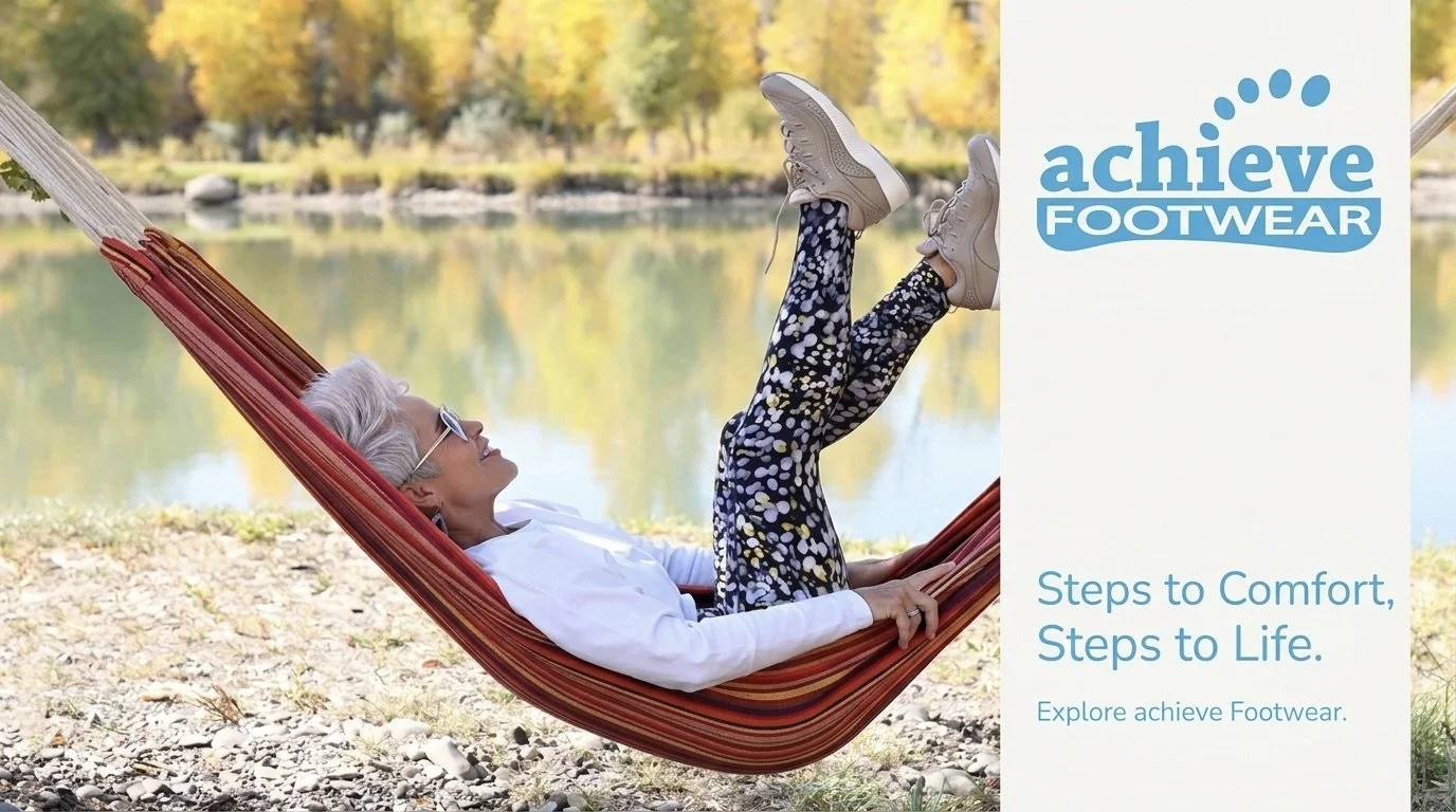 Step into comfort with senior-friendly footwear at Achieve Footwear. A family shoe store offering a true Sit-n-Fit experience. Enjoy a FREE foot analysis and personalized fitting to find your perfect pair—support, stability, and style made just for you. Come in and feel the difference today!